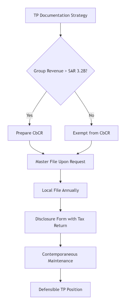 Unique to Saudi Arabia is the need to align transfer pricing documentation with both corporate income tax and Zakat obligations. The documentation must support positions taken for both regimes, adding complexity to your analysis.